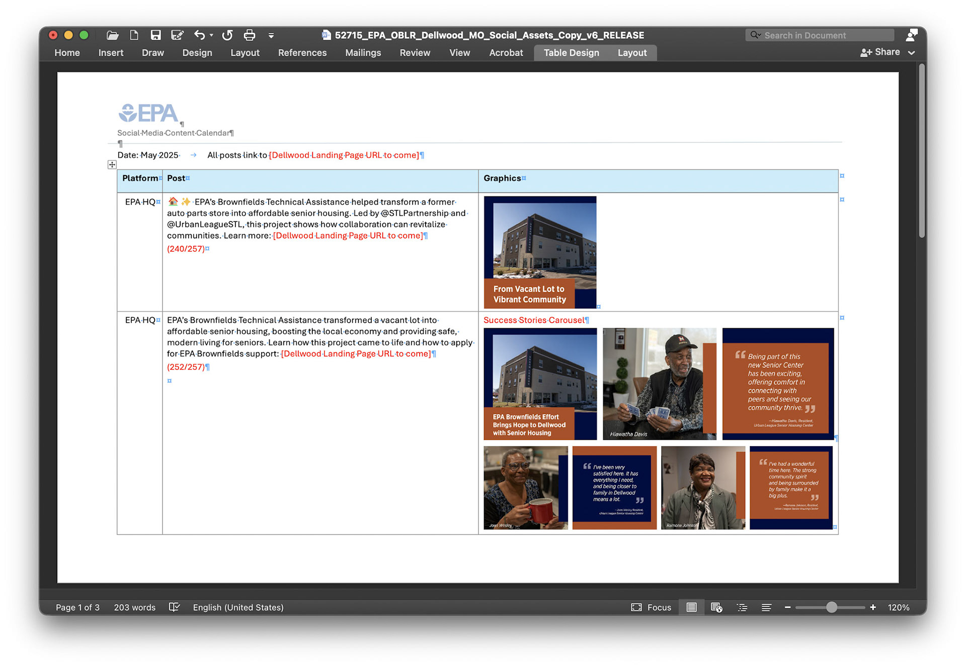 Social media carousel ads with static image option and copy doc. Production design, revisions, final output, and release.